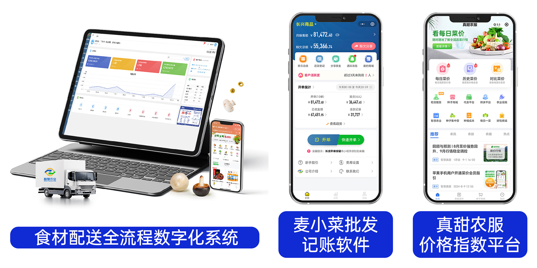 流通端:通过一系列创新的数字化系统,全面优化农产品从产地到市场的流通环节,涵盖食材配送全流程管理、批发市场档口经营管理、农产品价格监测与分析等领域。通过整合先进的信息技术,为农产品流通的各个环节提供精准的数据支持和优化方案。