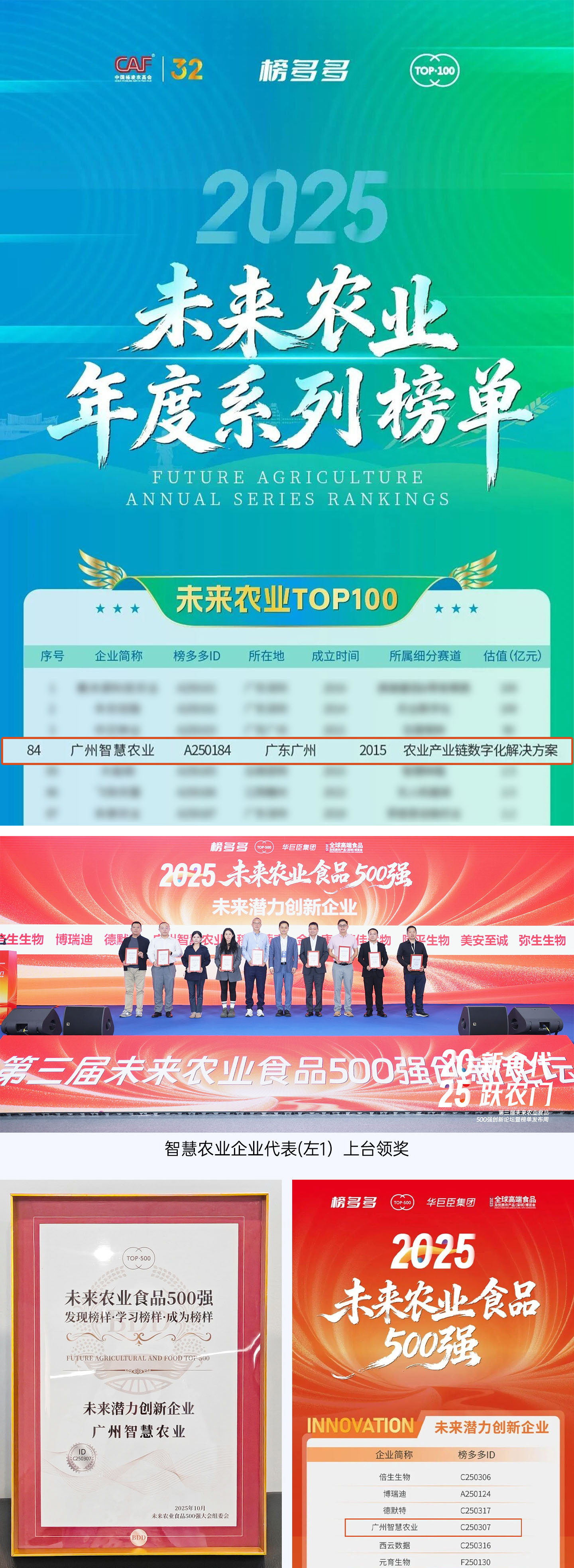 作为国家高新技术企业及广州市级农业龙头企业,广州市智慧农业服务股份有限公司致力于打造覆盖“农田·流通·餐桌”的全链条数字化服务体系,此次两度上榜,印证了公司在科技赋能农业生产、流通管理与消费终端等细分领域的的创新活力与市场增长潜力。